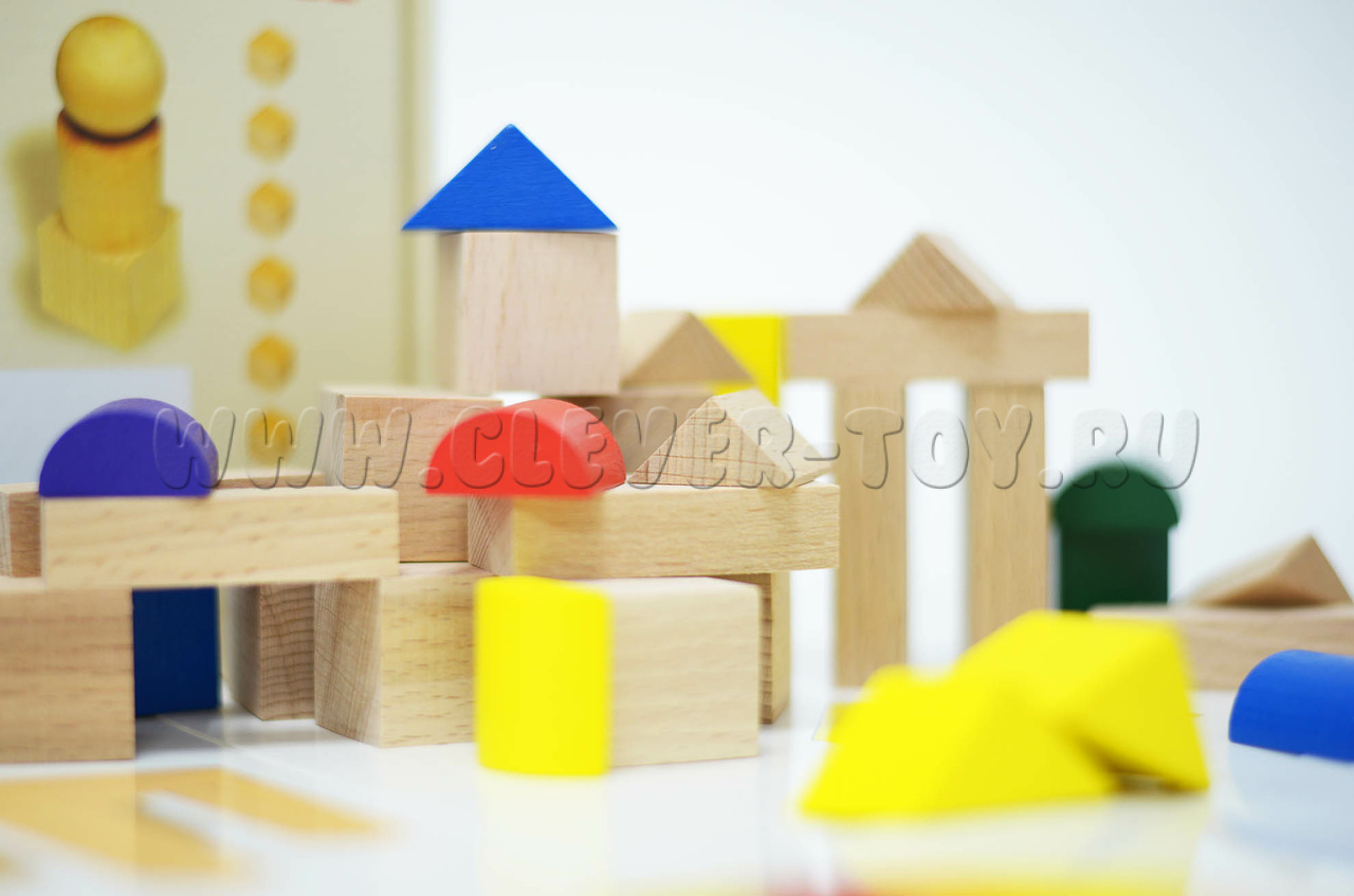 Игровой набор Фребеля «Конструктор деревянный без соединения-1» предназначен для детей от 3-х лет. С этим набором ребенок познакомится с геометрическими фигурами и цветами. Впоследствии пользуясь карточками из набора, ребенок может почувствовать себя строителем и собрать свой замок, а также пользуясь своим воображением, дети смогут придумать и создать все, что им захочется.