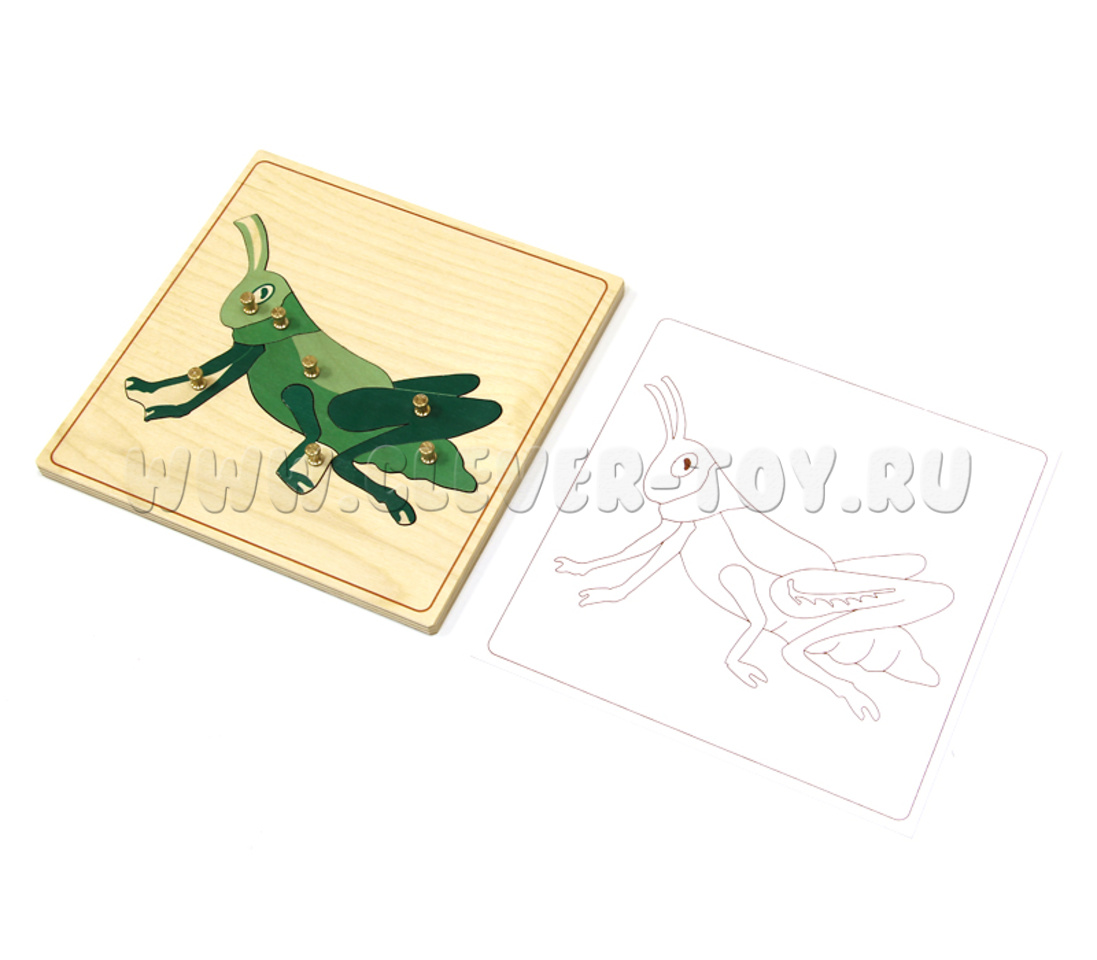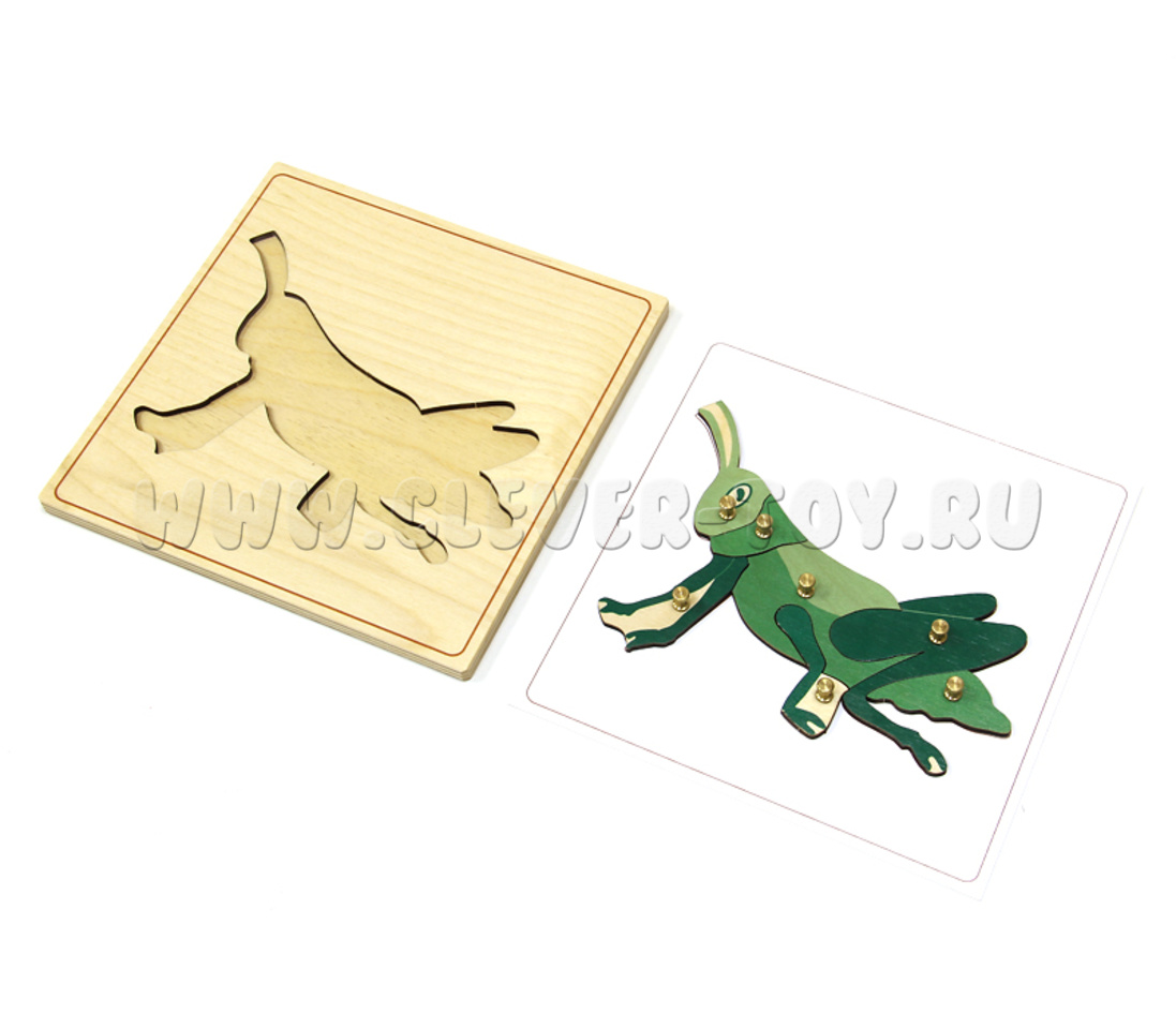 Знакомство со строением кузнечика путем составления целого из частей и проговаривания их названий способствует развитию речи, увеличению словарного запаса и формированию восприятия формы.