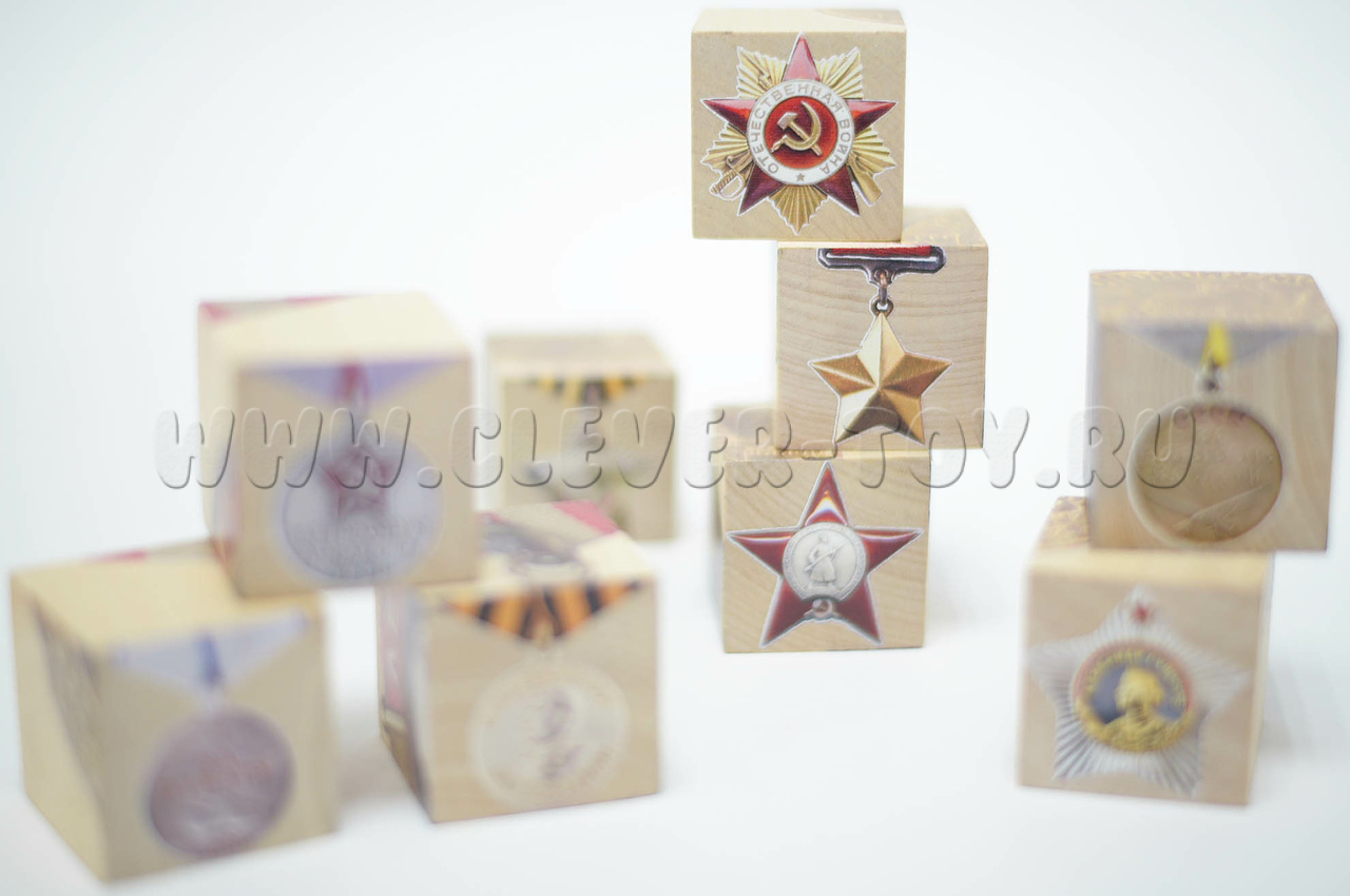 Набор интерактивных деревянных кубиков «Награды Победы» созданы к 75-летию победы в Великой Отечественной Войне. На них изображены ордена и медали, которые в годы войны изготавливались на Краснокамском Гознаке.
