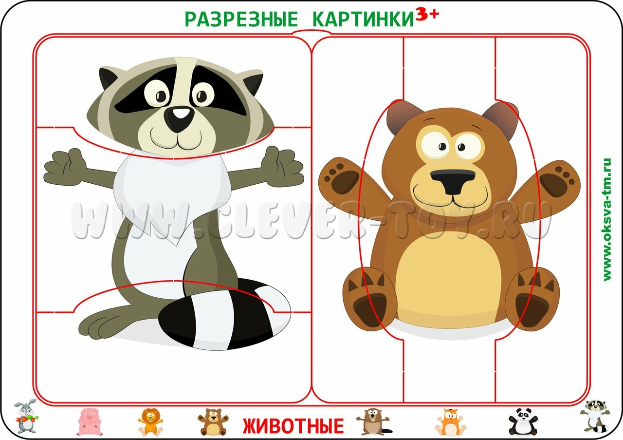 Разрезные картинки "Животные 3+"