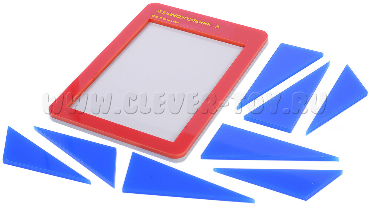 «Упрямоугольник-8» состоит из 8 плоских пластиковых треугольных элементов. Используя все 8 элементов, попробуйте решить следующие задачи:
