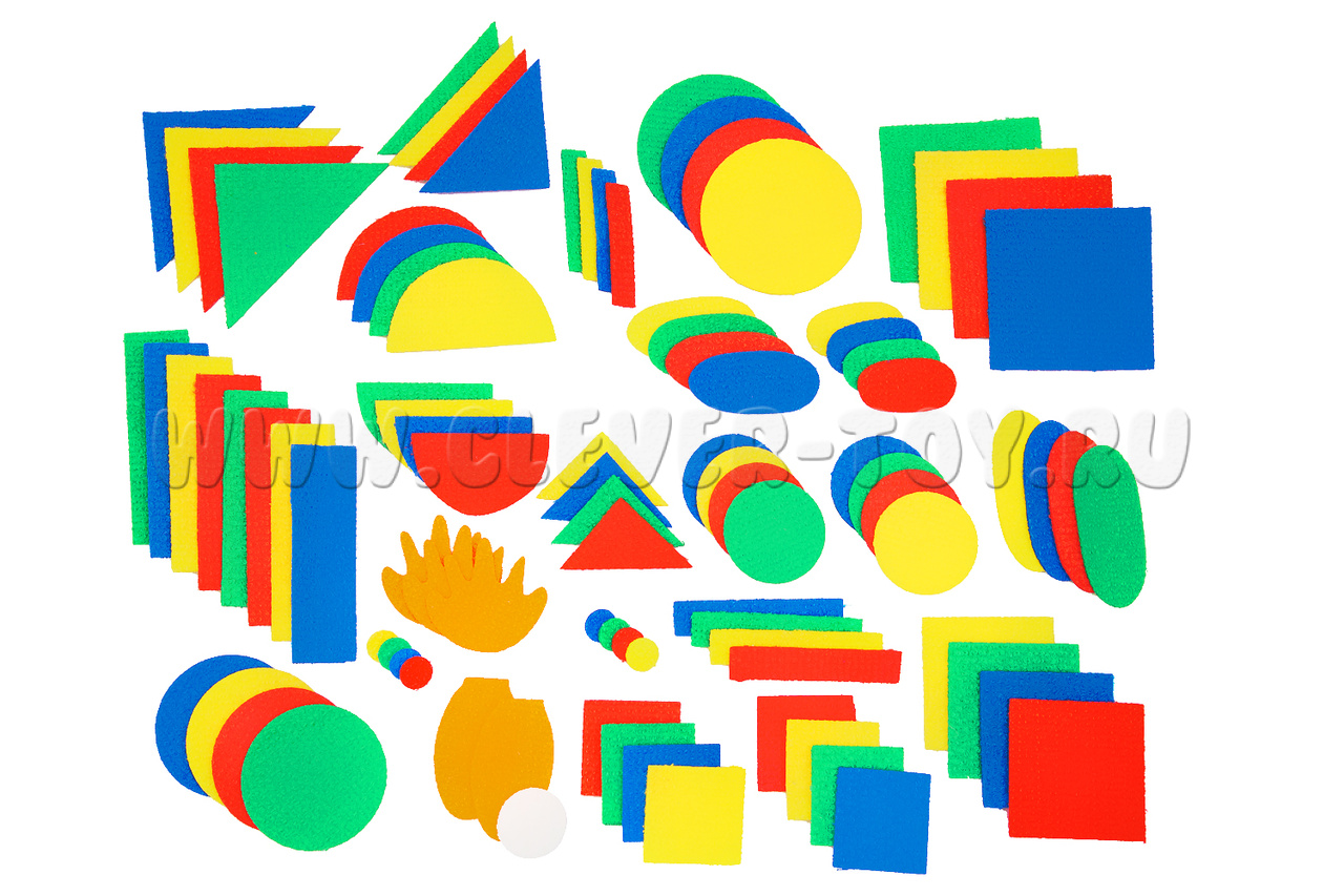 - прямоугольники большие, средние, маленькие 4-х цветов - 16 штук,