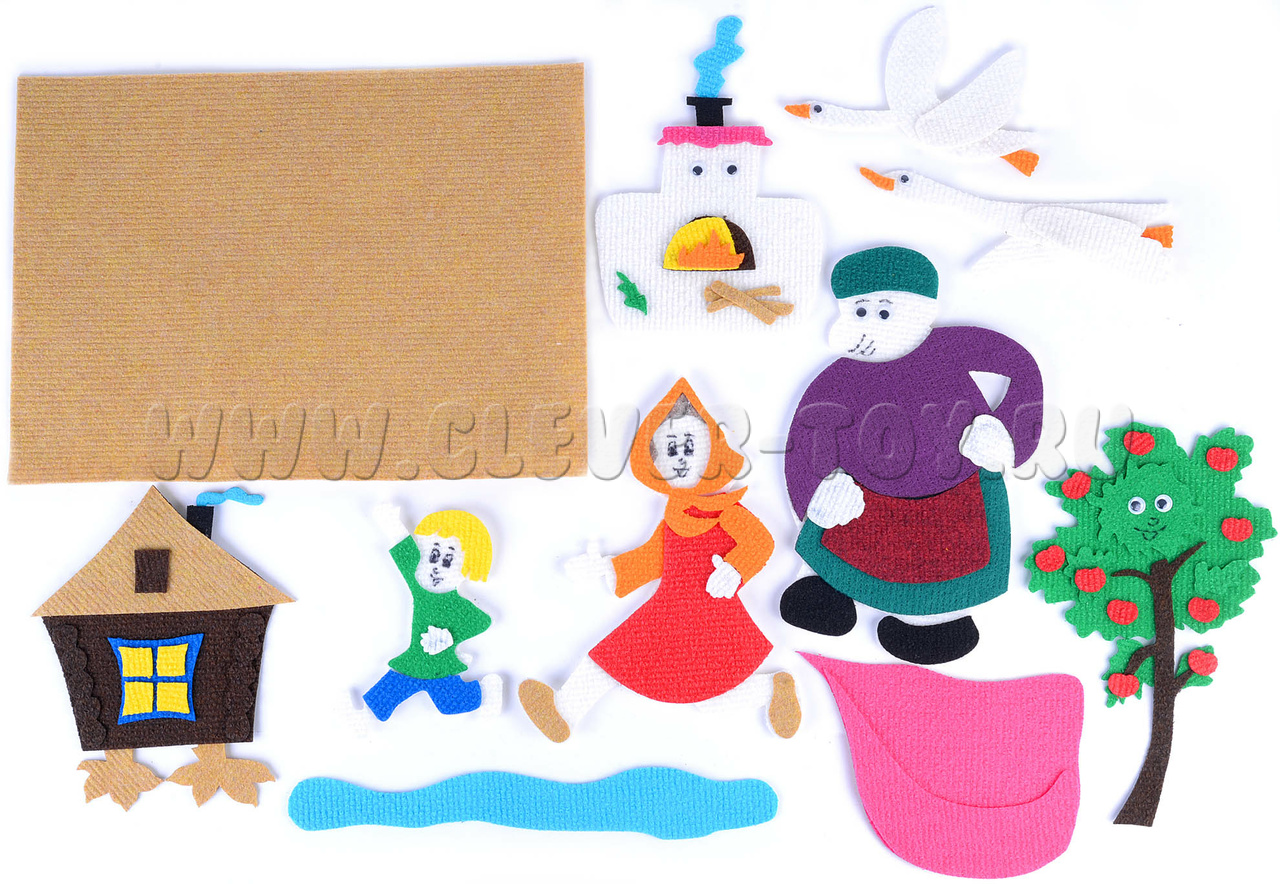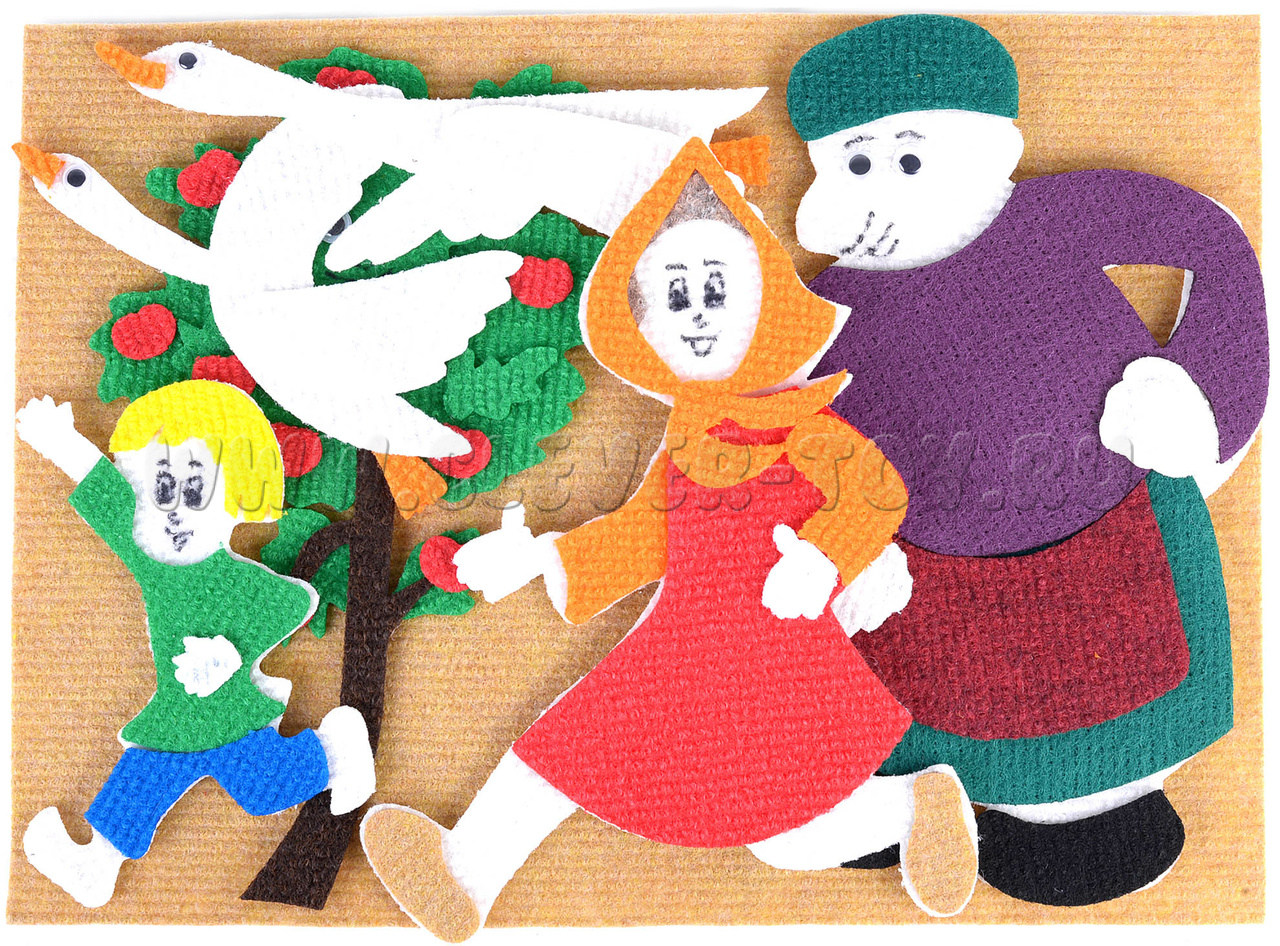 Сюжетная развивающая игра из современного материала ковролина по мотивам сказки «Гуси-лебеди».