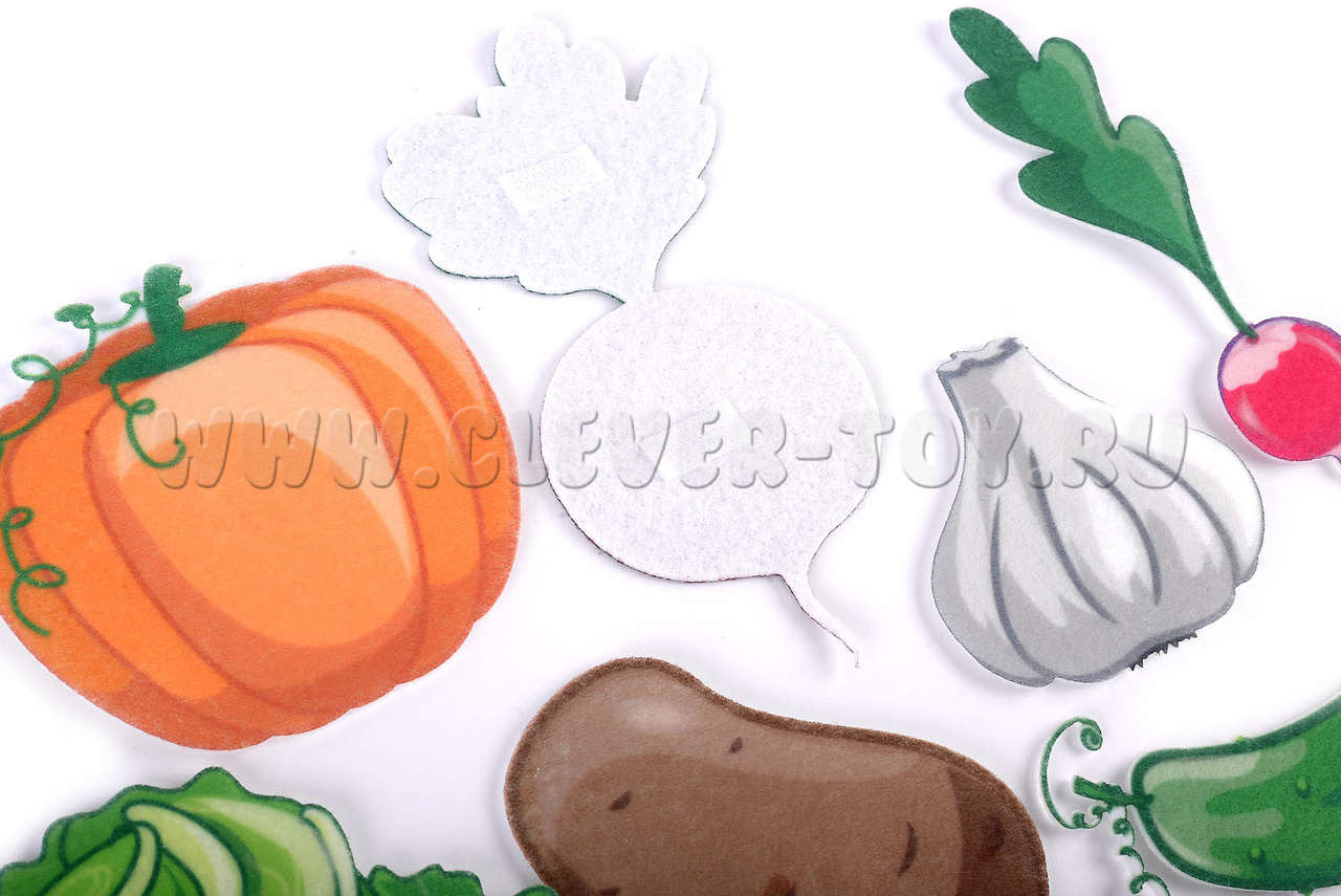 Игра включает в себя набор фигурок овощей, выполненных из мягкого и приятного на ощупь фетра. Каждый овощ имеет свой уникальный цвет и форму, что позволяет детям легко запомнить их названия и внешний вид.