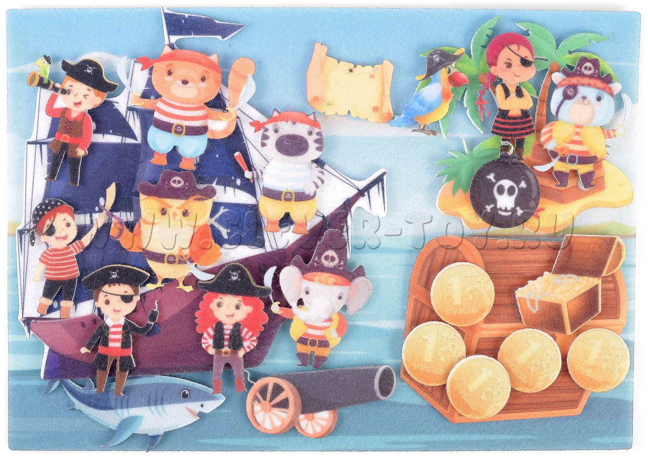 «Пиратская арифметика» — это игра, которая поможет вашему ребёнку развить концентрацию и внимание. Благодаря этой игре ребёнок также сможет улучшить свою речь и воображение.«Пиратскую арифметику» можно использовать как для индивидуальных занятий, так и для работы в детском саду. В комплект входит игровое поле и 45 деталей.