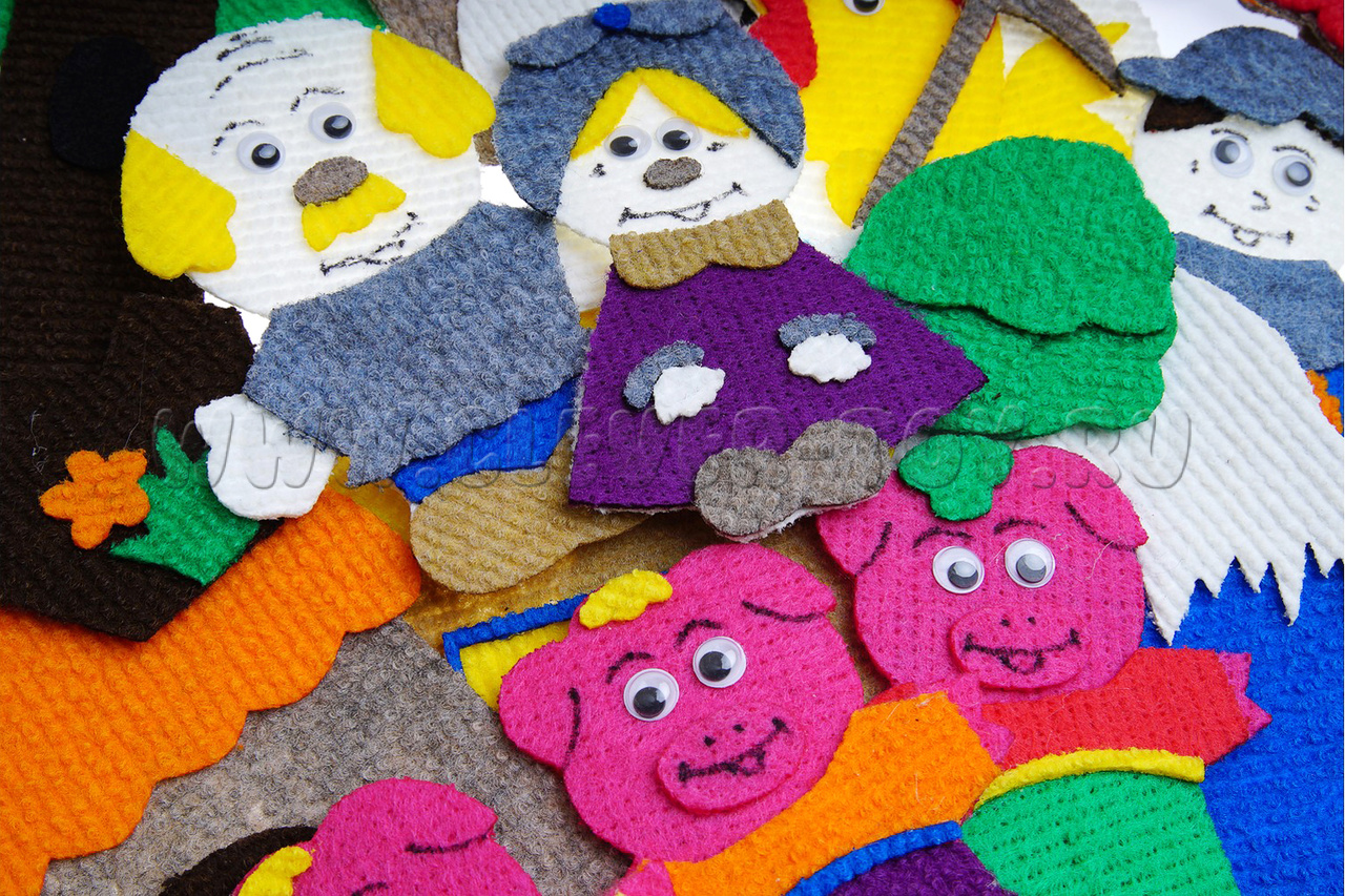 Большой набор персонажей из разных сказок, выполненные из ковролина, идеально подходит для занятий с дошкольниками дома и в детском саду! Рекомендован специалистами по раннему развитию детей дошкольного возраста!