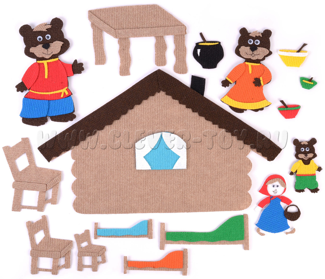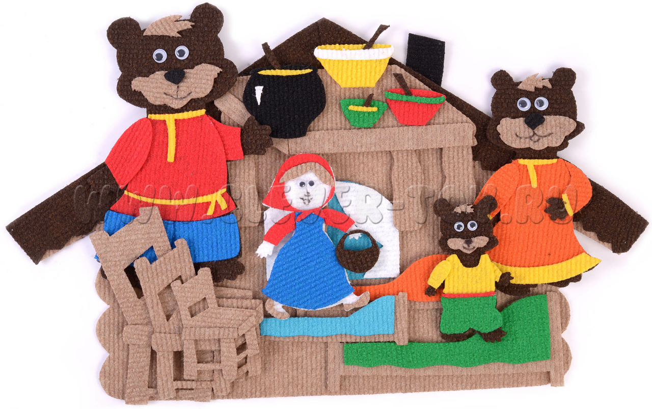 • персонажи сказки: медведь, медведица, медвежонок, девочка;