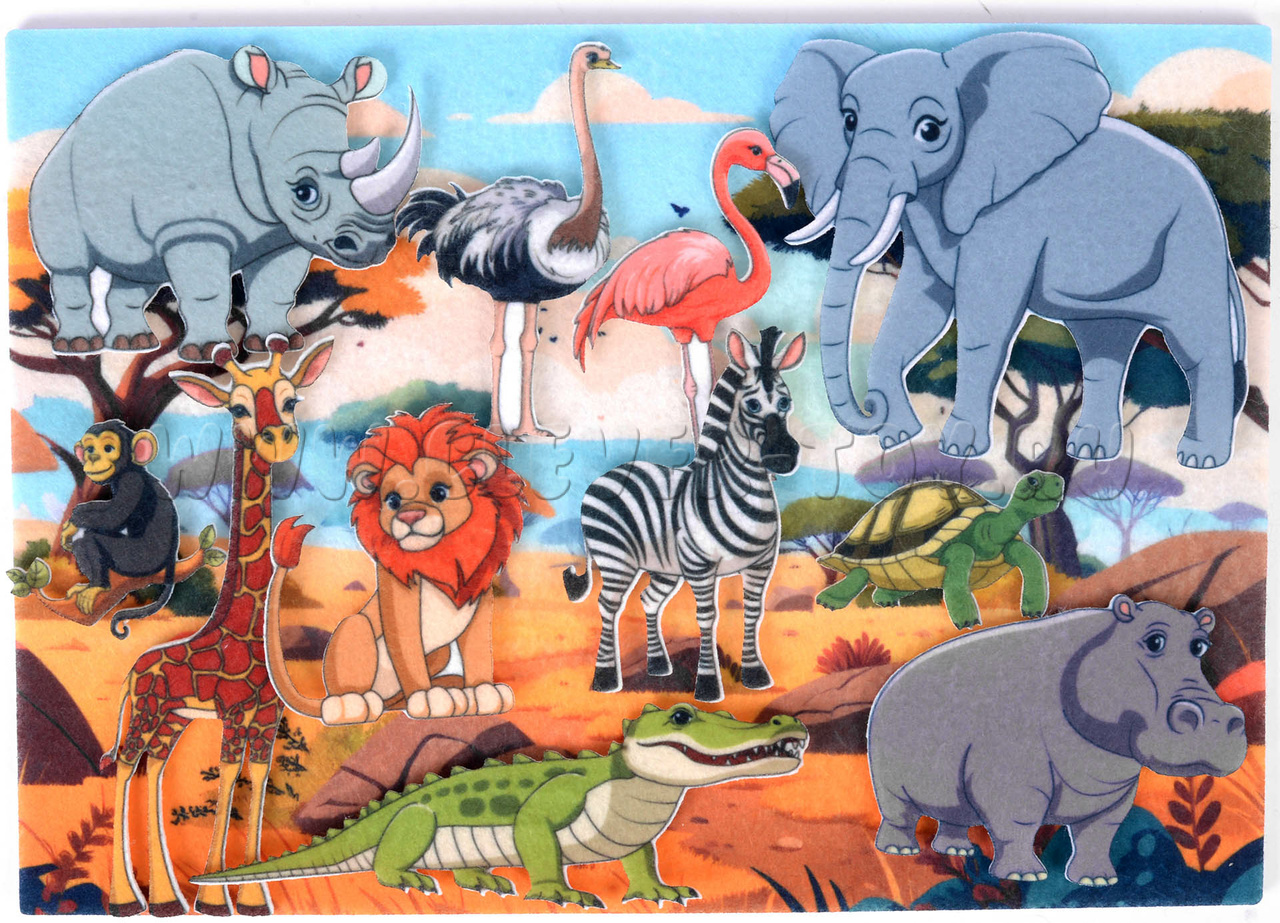 Зубастые и клыкастые, пятнистые и полосатые. Каких только существ нет на планете? С помощью тканевого конструктора «Животные жарких стран» ребенок в познавательной форме познакомится с самыми разными обитателями южных континентов. Регулярно занимаясь с учебным пособием, дети узнают больше об окружающем мире, расширят кругозор. Параллельно, при взаимодействии с мягкими деталями они смогут развить свои пальчики.