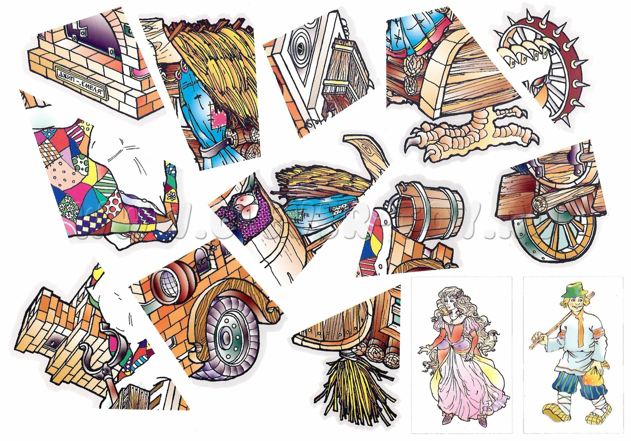 - Аккуратно наклеить собранные сказочные машинки и их владельцев на нужные листы альбома, найти хозяина каждой машины и приклеить его портрет.