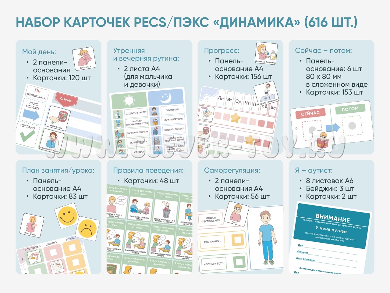 В комплект входит пять товаров для работы с детьми с повышенными потребностями. Каждая позиция разработана совместно с практикующими специалистами в области РАС и логопедии, коррекционной психологии и педагогики.