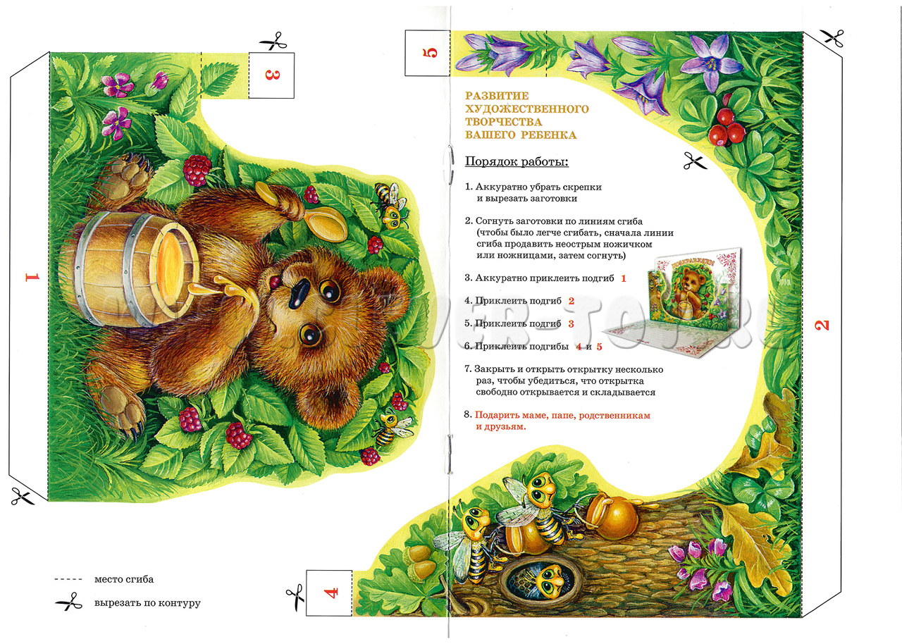 3D объёмная открытка-книжка для детского творчества "Мишка".