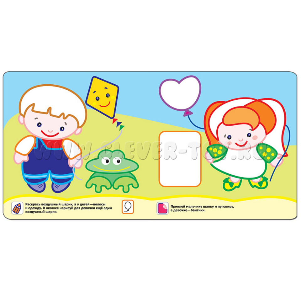 У раскраски яркий дизайн, крупные картинки и толстый контур, для того что бы ребенок учился раскрашивать, не выезжая за края. Книжка имеет дополнительную вкладку с двумя страницами наклеек, которые нужно приклеить, выполняя задания. Пособие состоит из 6 мелованных, матовых страниц.