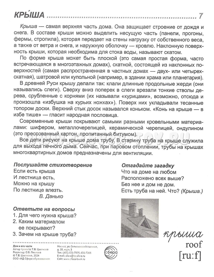 16 демонстрационных картинок для познавательного и речевого развития. На обороте каждой предметной картинки - описание дома и его частей, стихотворение, загадка, вопросы для ребёнка, название животного на русском и английском языках.