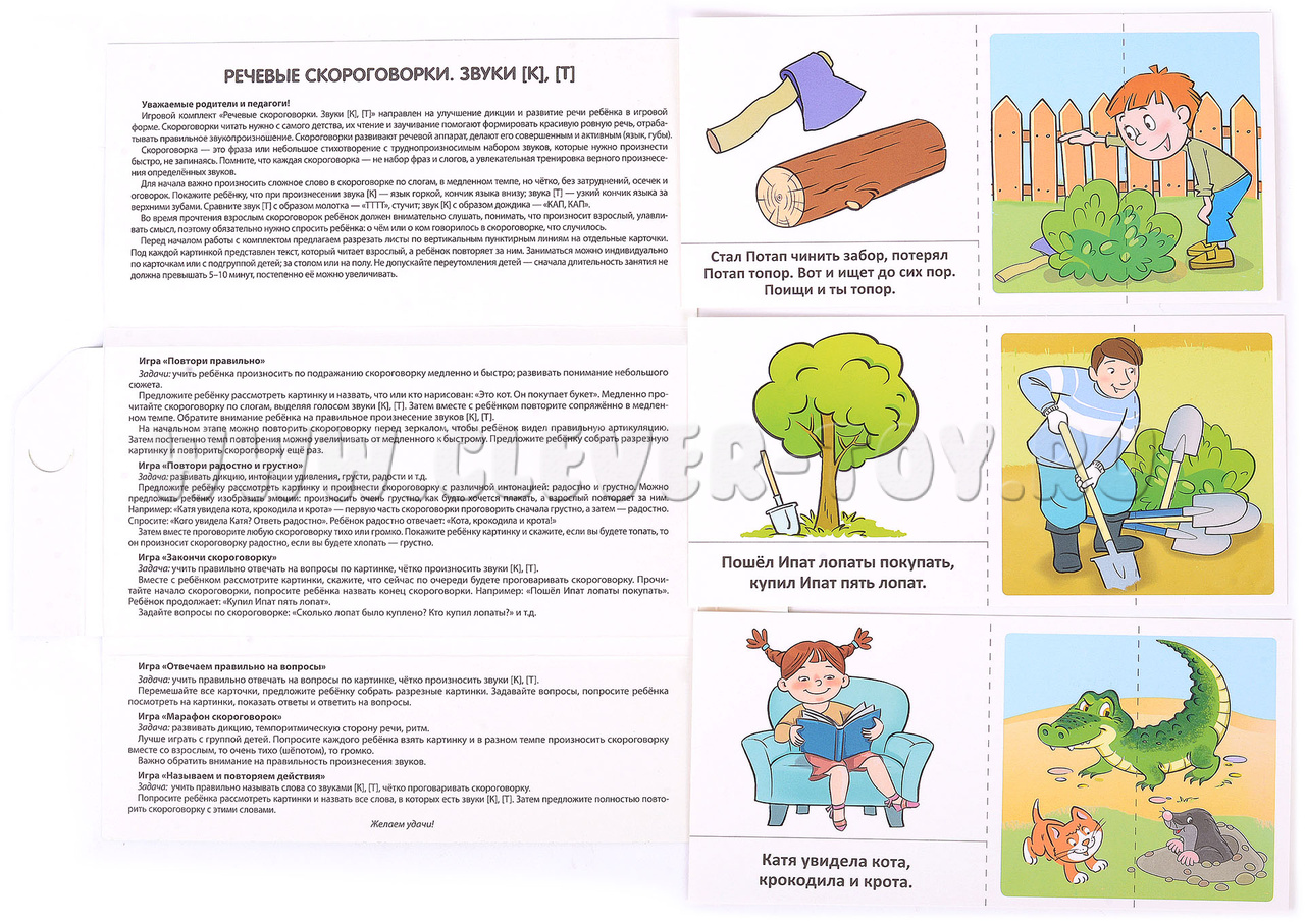 Набор карточек с рисунками. Речевые скороговорки. Звуки [К], [Т]. Для детей 3-7 лет