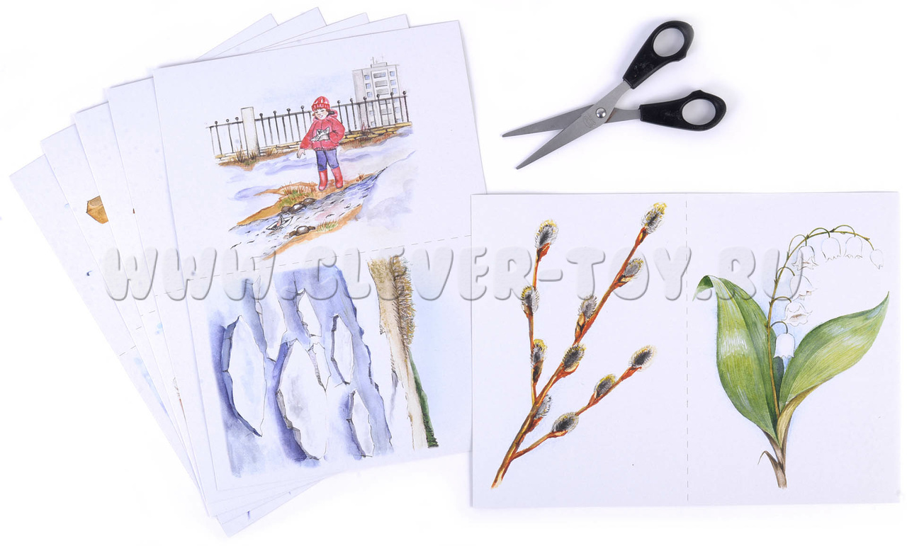 - предметные картинки с признаками весны - 12 шт. (6 разрезных листов А4);