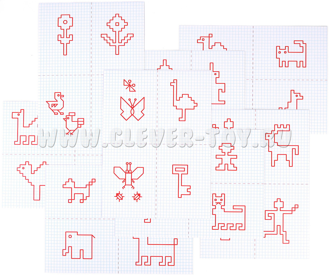 - Рисовать можно и под диктовку: выберите любое изображение и предложите малышу нарисовать узор под вашу диктовку (одна клетка вверх, две клетки вправо и т.д.);
