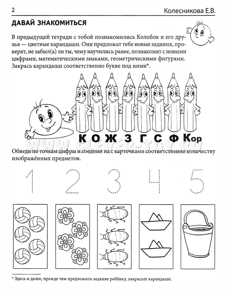 При проведении самоконтроля давайте ребёнку чёткие критерии правильно выполненного задания (например, ты должен был обвести цифру 5), сверяясь с которыми, он самостоятельно оценивает свою работу. С этой целью на каждой страничке нарисован Колобок-смайлик, у которого не обозначен ротик (эмоция), его должен изобразить ребёнок, оценивая свою работу.
