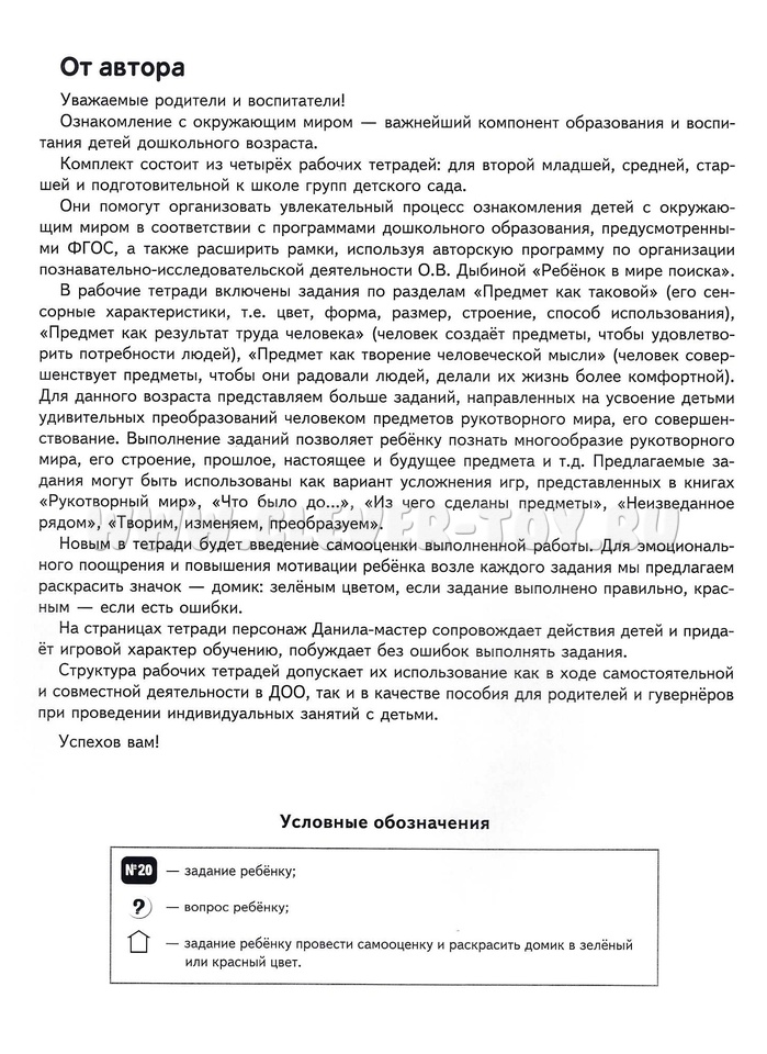 Тетрадь предназначена для работы с детьми 6-7 лет. Может помочь организовать познавательно-исследовательскую деятельность детей по авторской программе О.В. Дыбиной "Ребёнок в мире поиска" в детском саду, дома, в группах развития.