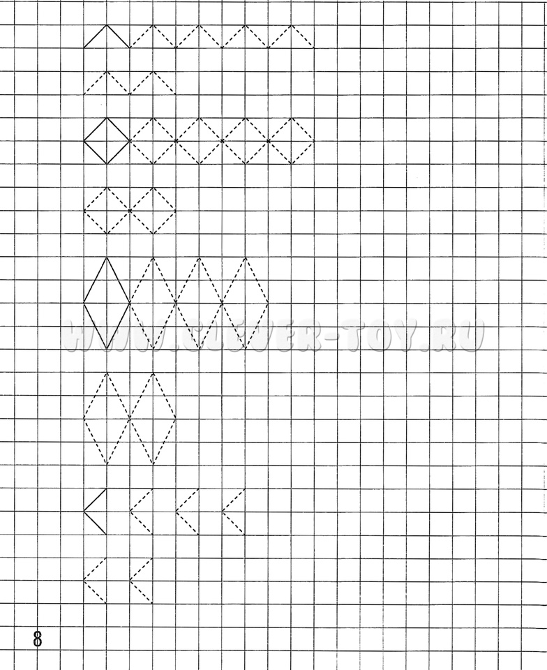 Развивает логическое мышление, внимание, усидчивость, тренирует умение строить графические объекты, умение ориентироваться на бумаге в клетку.