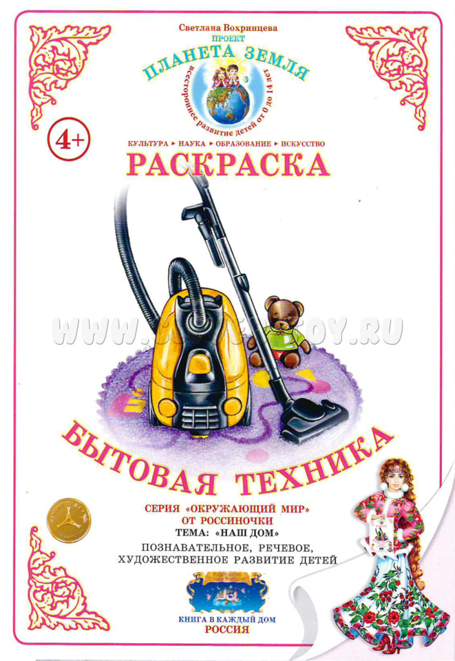 Раскраска «Бытовая техника» предназначена для детей от 4 лет. Она содержит яркие иллюстрации на тему бытовой техники и предлагает 9 листов с контурами для раскрашивания. Эта раскраска помогает детям формировать и расширять представления о бытовой технике, развивать познавательные интересы, творческие способности и навыки устной речи.