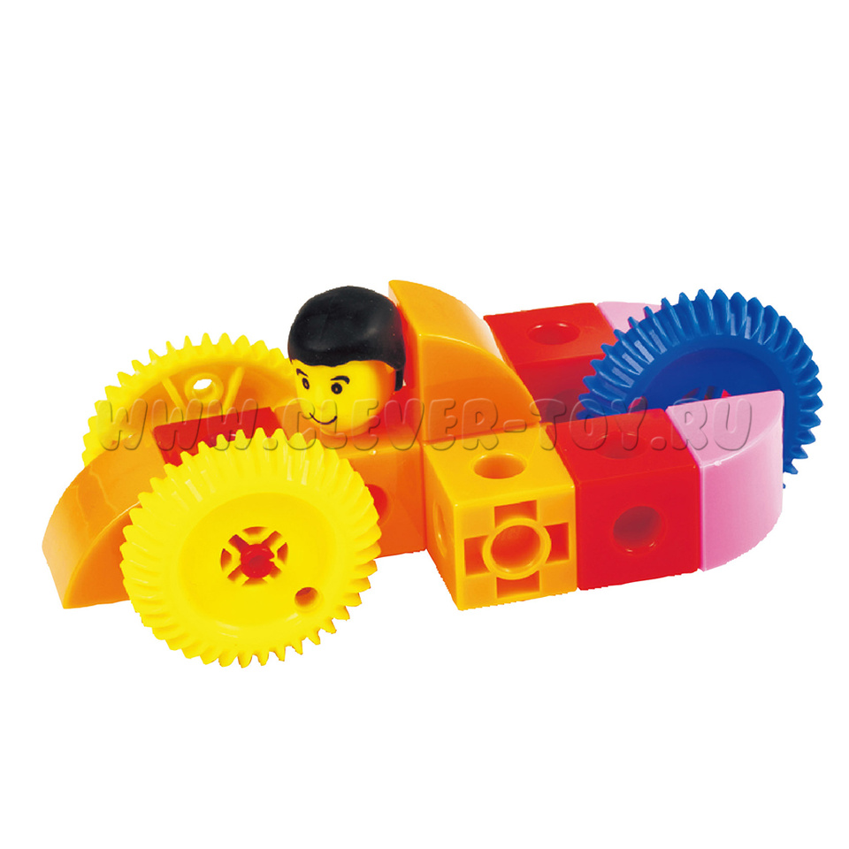 Кубики Gigo имеют уникальную конструкцию. Каждый кубик имеет размер 2*2 см, один выступ-штифт и пять отверстий для соединений. Количество комбинаций соединений кубиков между собой и с другими элементами огромно - это буквально миллионы вариантов. Для прочного соединения детали необходимо повернуть относительно друг друга, как бы вкручивая, а чтобы легко разъединить необходимо повернуть относительно друг друга, немного выкручивая. Благодаря такому соединению модели получаются очень прочными.