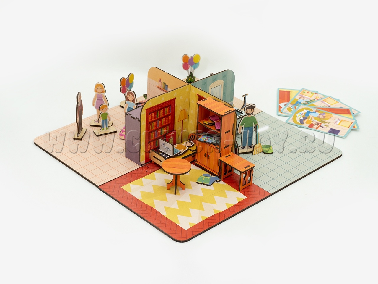- Путешествие. Локация предлагает площадки для разыгрывания сюжетов семейного досуга в формате путешествий по России (поездка в горы, на пляж/водоем, в лес, на дачу).