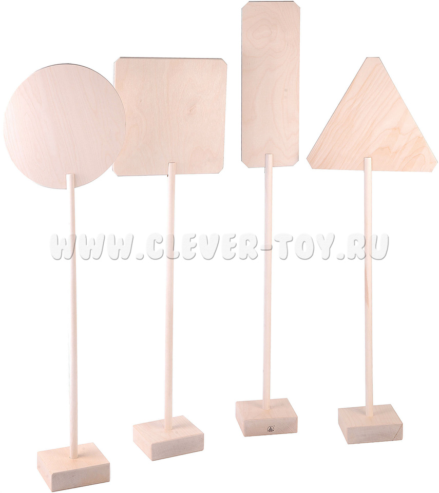 На геометрические фигуры необходимо наклеить соответствующие наклейки. Затем вклейте палочку в подставку. и последний шаг: вклейте знак в паз на палочке.