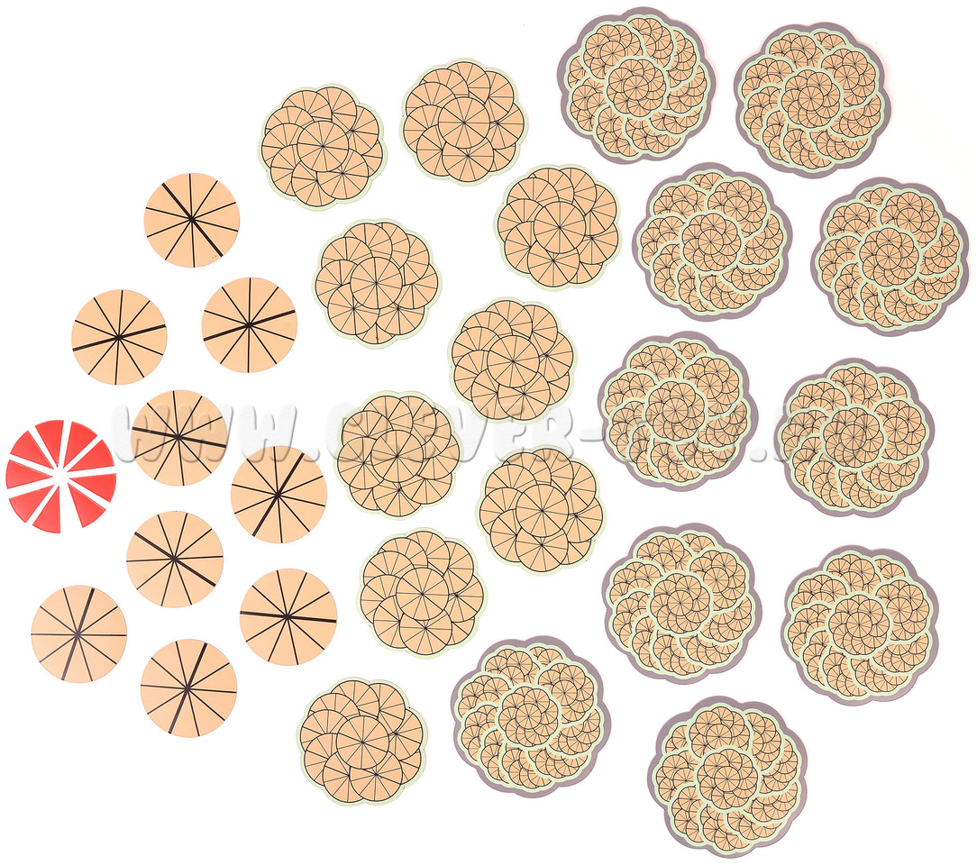 тысячи: 10 см х 10 см; сотни: 8 см х 8 см; десятки: 6 см х 6 см.