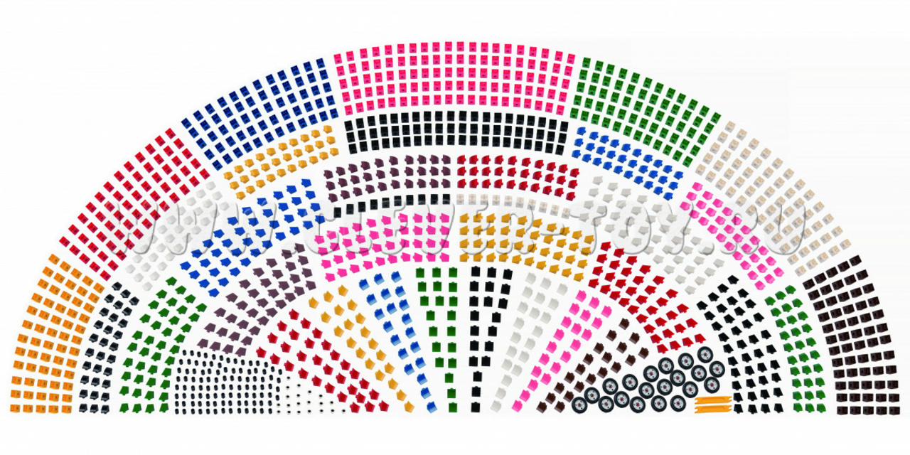 - Набор состоит из множества разноцветных деталей различной формы и размера.
