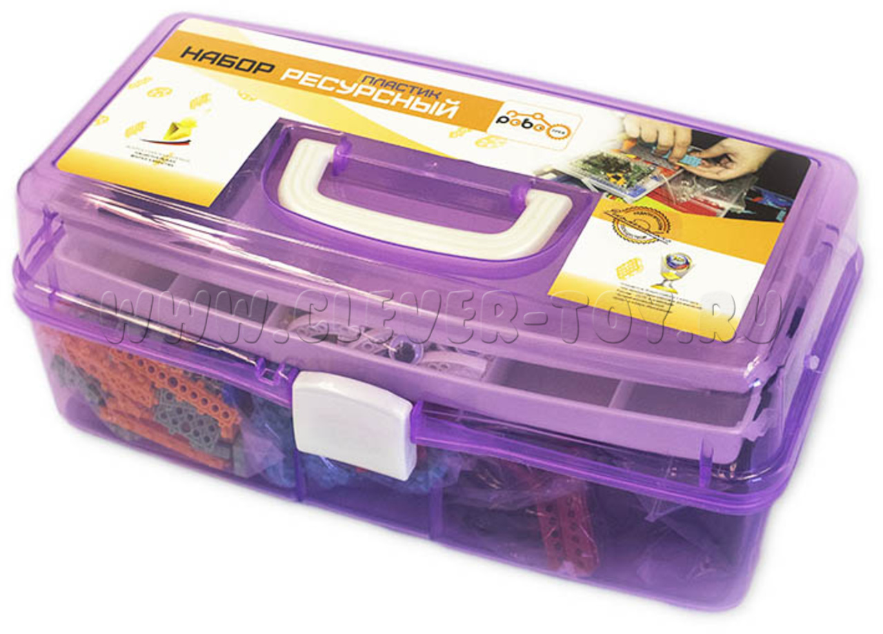 Ресурсный набор "ПЛАСТИК" состоит из пластиковых деталей: балок разных форм, уголков, пластин, дуг, осевых блоков. Данный набор расширяет конструкторские возможности всех ресурсных наборов линейки Роботрек.